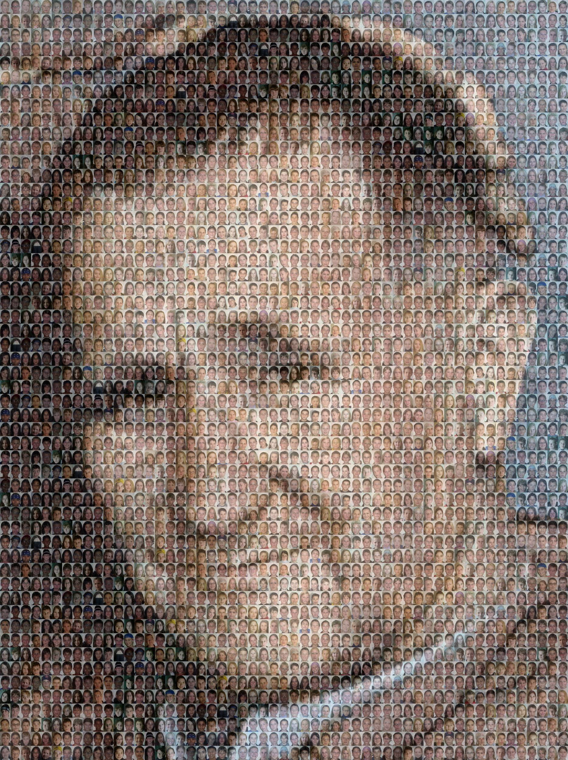 Das Portrait des Namensgebers der Schule, zusammengesetzt aus 3132 Schülerbildern.